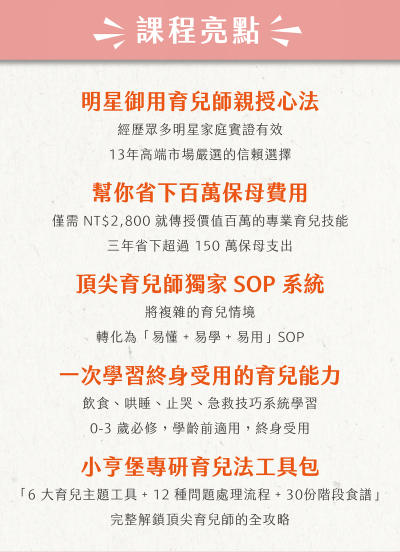 預計3.5小時育兒課程+2.5小時明星高訂課程,可重溫觀看